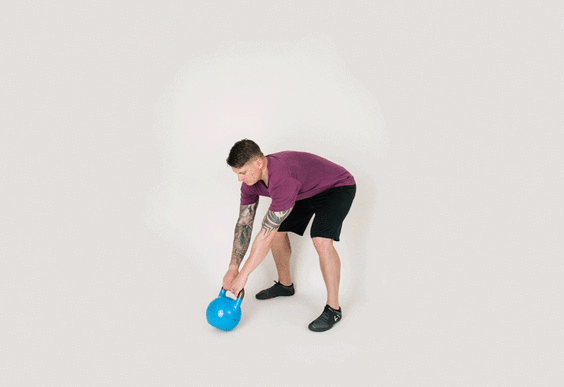 - Let momentum swing kettlebell to chest height (don't lift with arms)